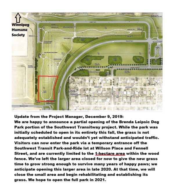 Project Manager Update: December 9, 2019 Share this: Click to share on X (Opens in new window) X Click to share on Facebook (Opens in new window) Facebook Like Loading... Related Published by brendaleipsicdogparkers Brenda Leipsic Dog Parker's Inc are Advocates for the users of the Brenda Leipsic Off-leash Dog Park View all posts by brendaleipsicdogparkers